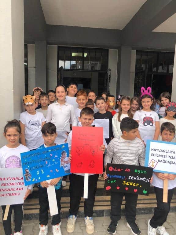 4 Ekim’de okullarda ve çeşitli kurumlarda farkındalık çalışmaları yapılır; hayvan sevgisi, hayvan hakları ve onların korunması hakkında etkinlikler düzenlenir. Bugün 3/L ve 3/K sınıfı öğrencileri ile öğretmenleri Ezgi ÇINAR ve Zeynep BEKTAŞ hayvan sevgisi, hayvan hakları ve onların korunması hakkında etkinlikler düzenleyerek bizlere, hayvanların sadece sahipli değil, sahipsiz olanlarının da yaşam hakkı olduğunu hatırlattılar.